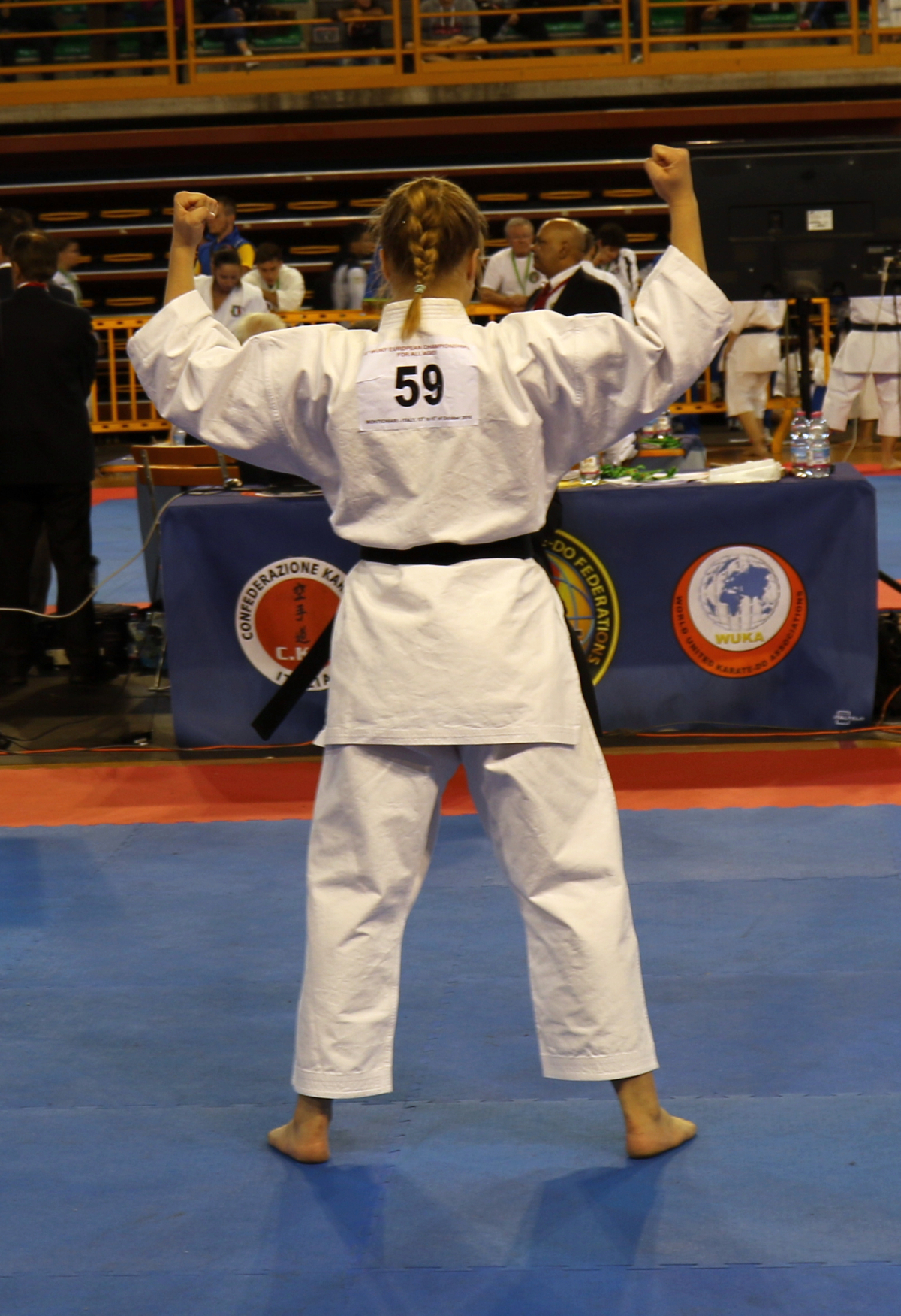 Radnóti Bettina három bronzéremmel gazdagÃtotta válogatottunk érempalettáját, hiszen felnÅ‘tt wado katában, felnÅ‘tt kumite +60 kg-ban és U21 korosztály kumite Open kategóriájában is 3. helyezést ért el.