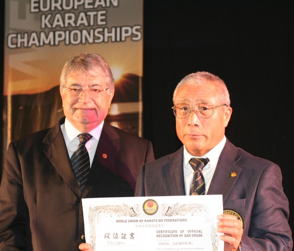 We should mention that István Sipos and Péter Gyüre managed to win medal in very strong rengokai veteran categories. Win of the sport diplomacy was that our Shihan Kando Shibamori was awarded by 9th dan diploma of the World Union of Karate Federation at the opening ceremony acknowledging his instructor work by the President Mr Osvaldo Oliveira.